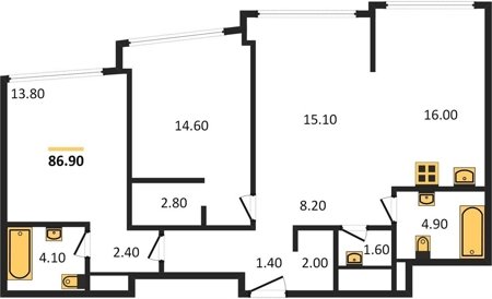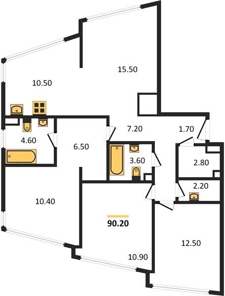 Площадь от 90.2 м2