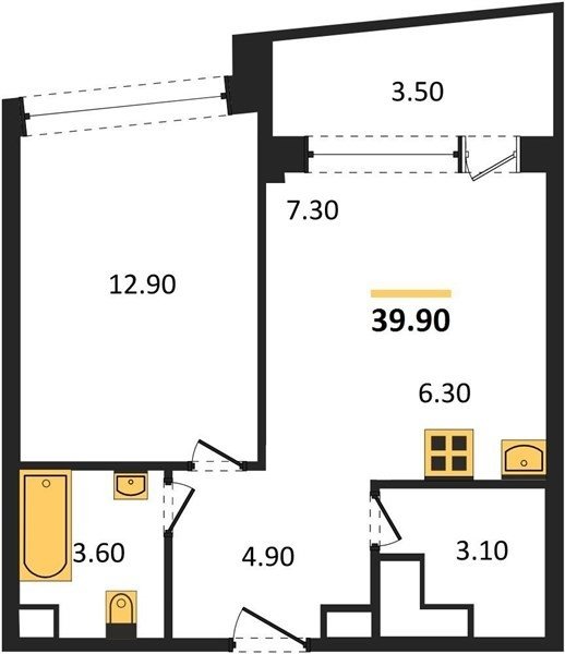 Площадь от 39.9 м2