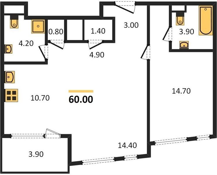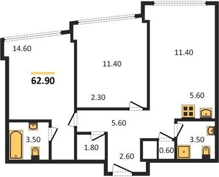 Площадь от 62.7 м2