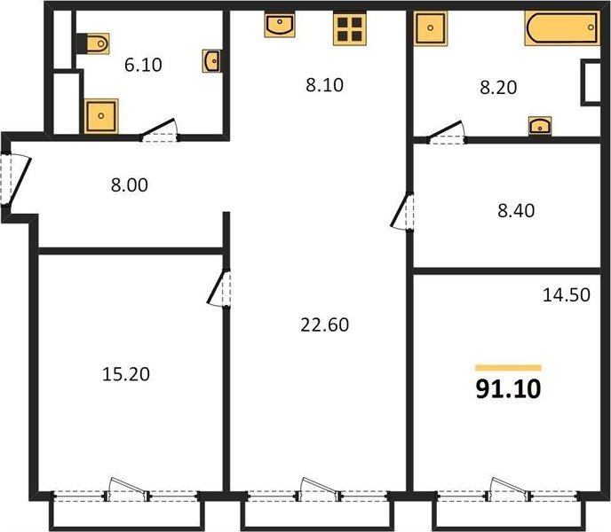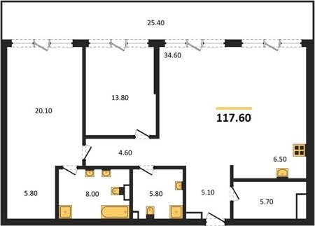 Площадь от 85.3 м2
