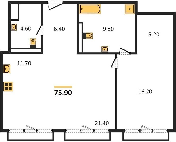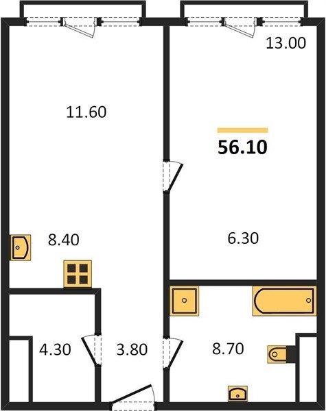 Площадь от 55.8 м2